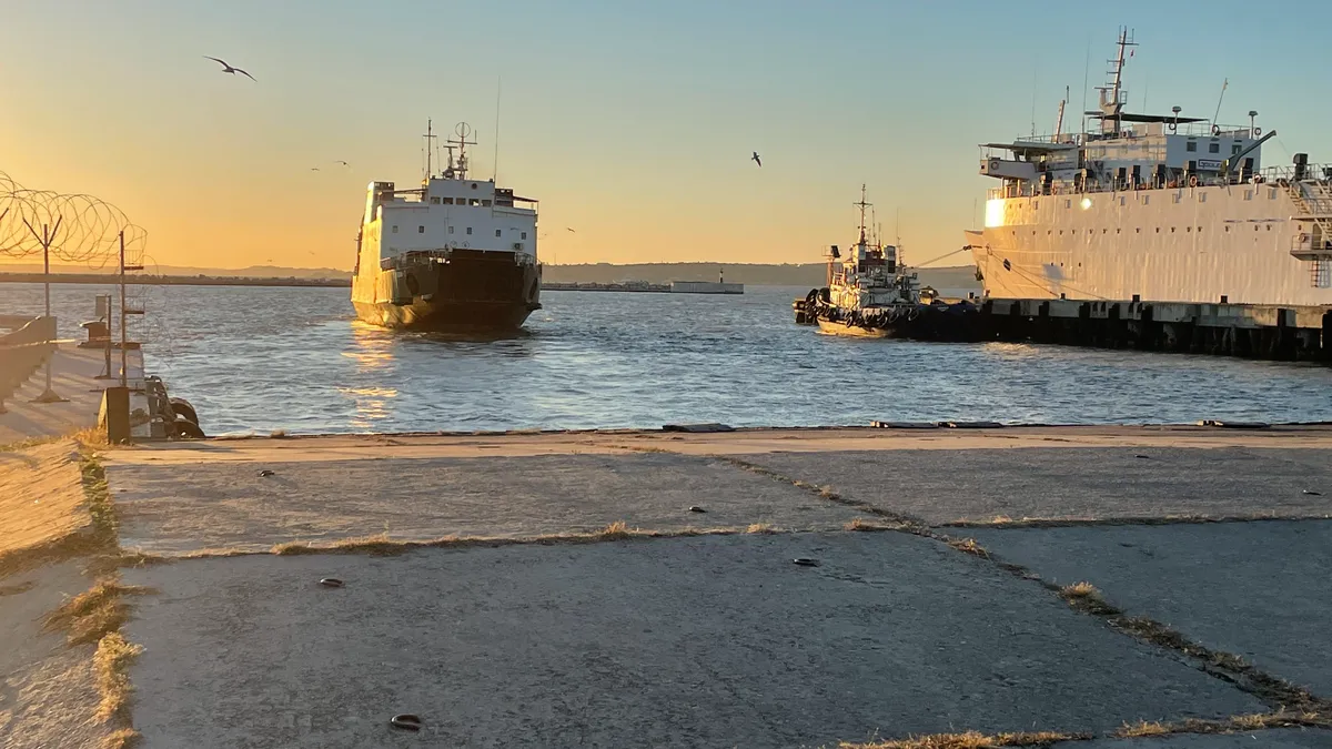 Керченская переправа выглядит очень запущенной. Там, где стоят в очереди грузовые автомобили, сквозь асфальт активно пробивается трава. Кассы, где до открытия Крымского моста толпились очереди на переправу, выглядят как здания из фильма постапокалипсиса. Карбоновые листы павильонов поломаны, экран, где раньше была информация о времени отправления паромов, рассыпается буквально на глазах. Везде царят ржавчина, разруха и запустение.