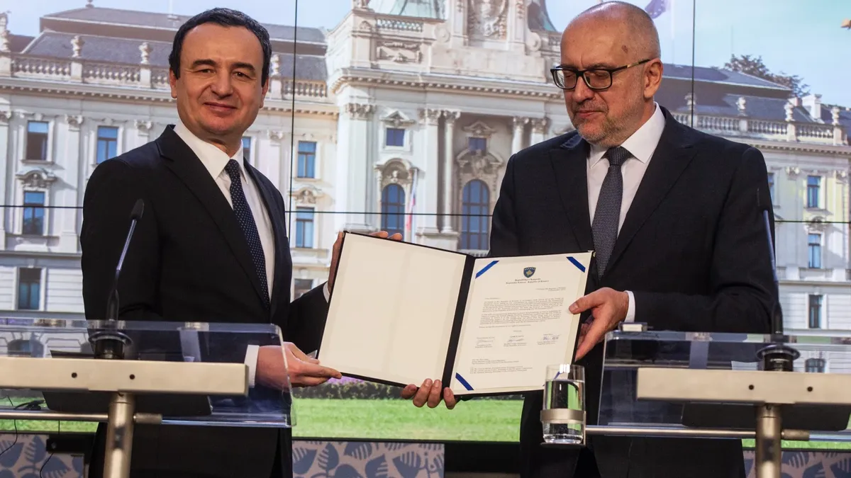 Премьер-министр Косово Альбин Курти подает официальную заявку на вступление в ЕС. Прага, 15 декабря 2022 года. Фото: EPA-EFE / MILAN KAMMERMAYER