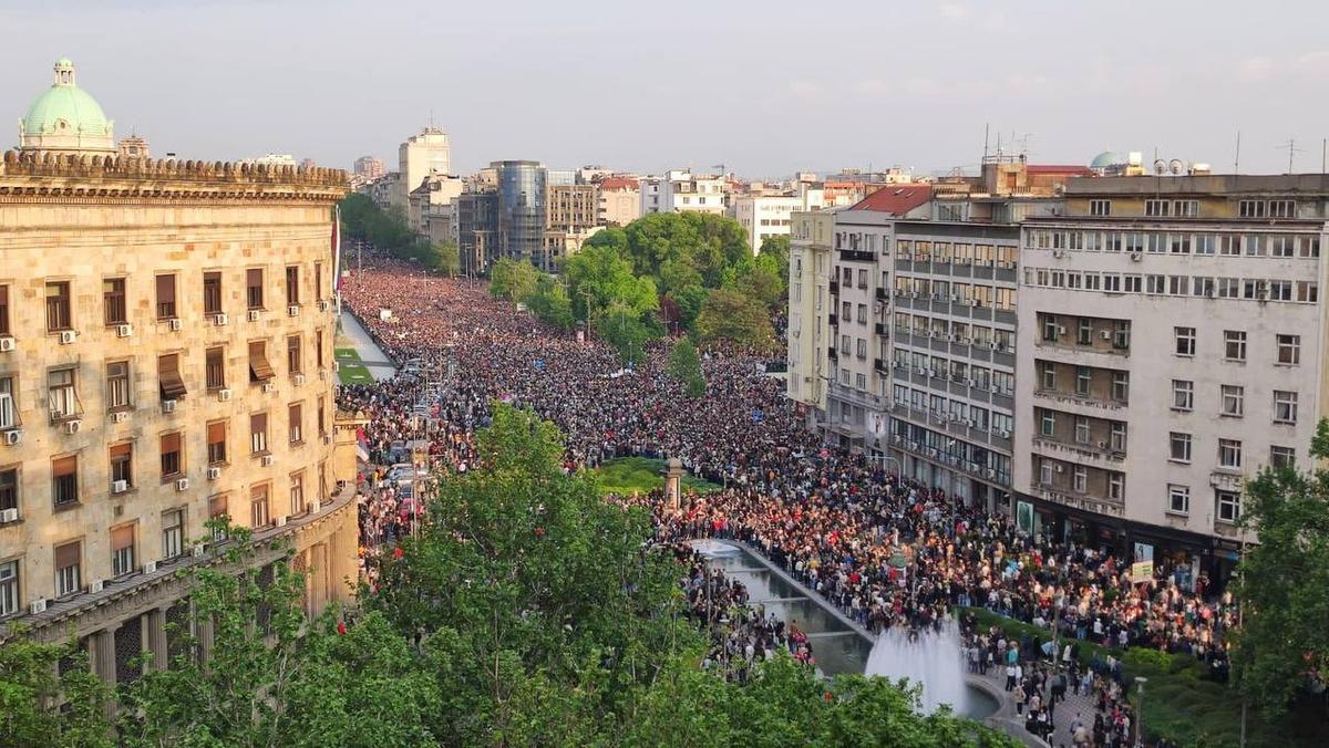 В столице Сербии Белграде десятки тысяч человек вышли на протесты против насилия после того, как 18 человек застрелили 3 и 4 мая. Об этом сообщает Reuters.
