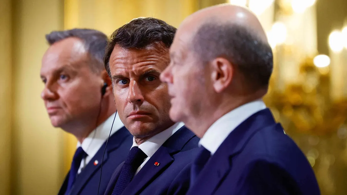 В Париже прошла встреча лидеров стран так называемого «Веймарского треугольника» (Франции, Германии и Польши) по поводу войны РФ против Украины. По инициативе французского президента Макрона на встрече обсудили «гарантии безопасности, которые могут быть предоставлены Украине в долгосрочной перспективе, чтобы гарантировать ее суверенитет и территориальную целостность», а также — как помочь украинцам успешно провести контрнаступление. Перед «рабочим ужином», в ходе которого Макрон, Шольц и Дуда поговорили об этом и других вопросах подробно и off the record, они дали совместную пресс-конференцию.