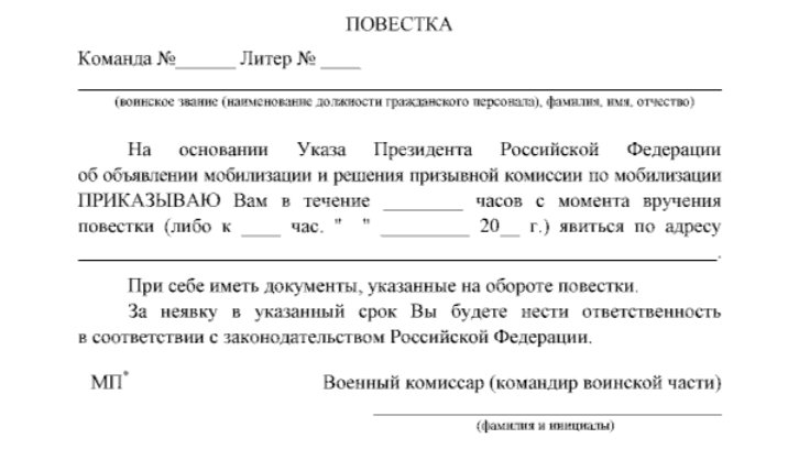 До этого в России формально не существовало повесток по мобилизации, военкоматы пользовались типовой формой повестки по призыву.