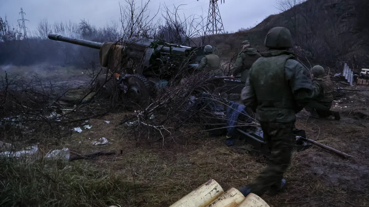 Самопровозглашенное ополчение Донецкой Народной Республики ведет огонь из 152-мм полевой пушки 2А36 «Гиацинт-Б» по позиции недалеко от Авдеевки, Донецкая область, восточная Украина, 22 ноября 2022 года. Фото: Алессандро Гуэрра / EPA-EFE