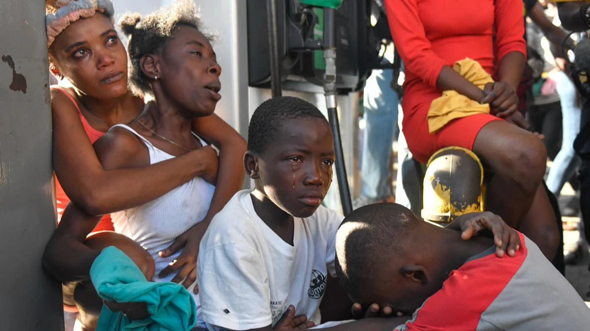 Женщины и дети плачут, увидев тело родственника на улице в Порт-о-Пренсе, Гаити, 18 марта 2024 года. Фото: Johnson Sabin / EPA-EFE
