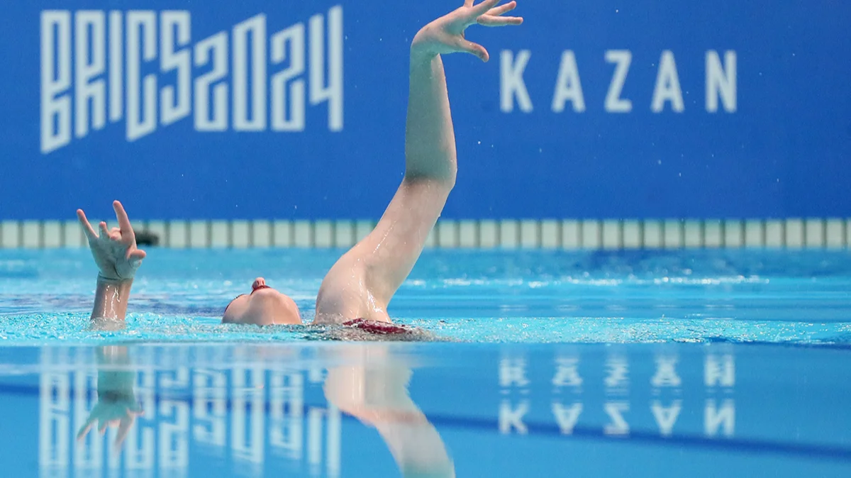 Александра Кузнецова из России во время соревнований по художественному плаванию на Играх БРИКС в Казани, Россия, 14 июня 2024 года. Фото: Максим Шипенков / EPA