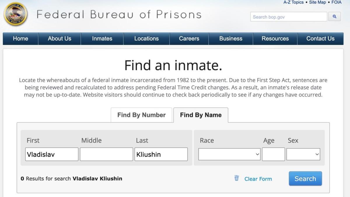 При этом информация о других россиянах, отбывающих наказание в американских тюрьмах, по-прежнему доступна. К примеру, в базе все еще можно найти хакера Владимира Дунаева, пишет РИА Новости.