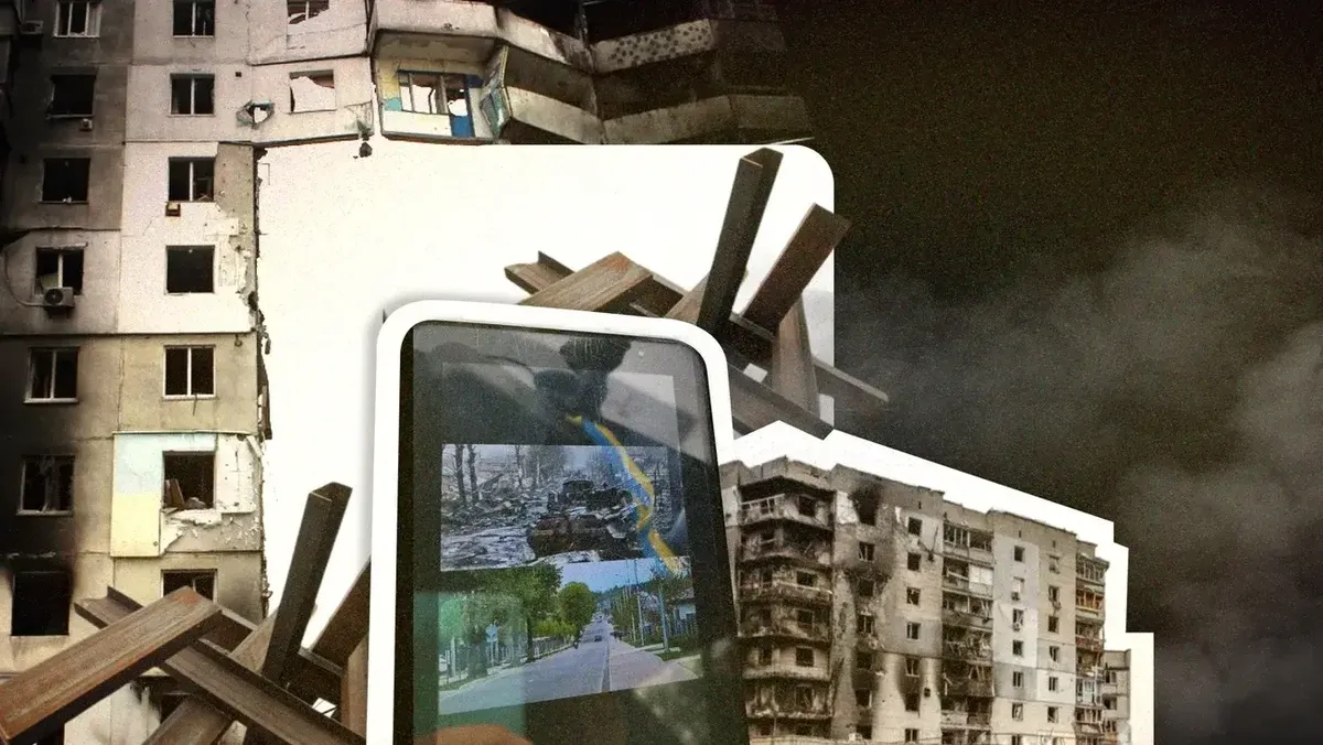 Турист снимает на камеру разрушенный дом. Фото: hromadske