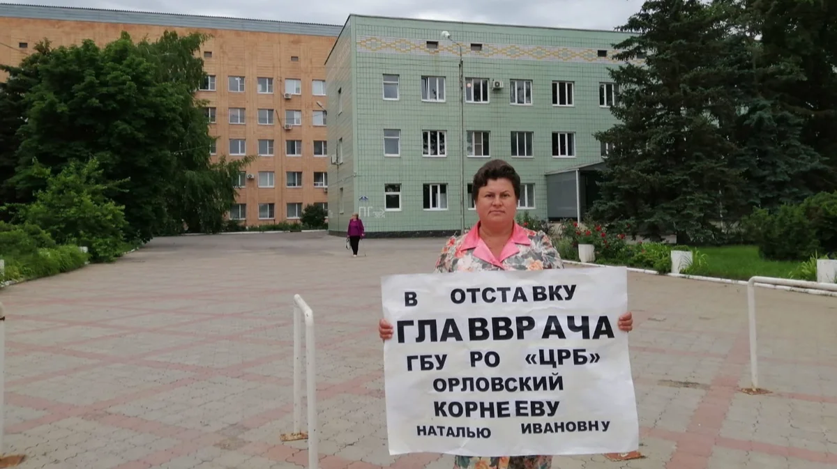 Людмила Борзило с пикетом у Орловской районной больницы, 5 июня 2023 года. Фото: Ятрогения / VK