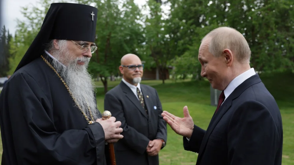 Довольно странный обмен подарками, явно не доработанный службой протокола, состоялся 15 августа (рано утром 16-го по московскому времени) между Владимиром Путиным и православным архиепископом Ситкинским и Аляскинским Алексием (Трейдером).