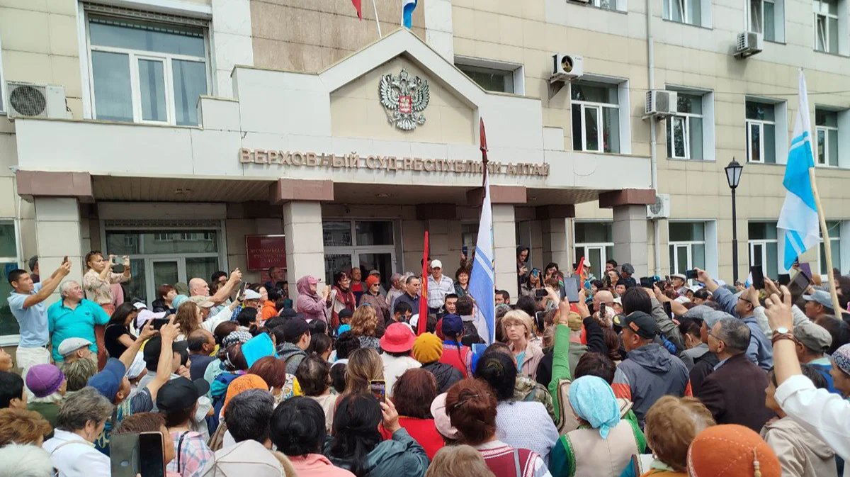 После завершения судебных разбирательств из здания вышел юрист Дмитрий Тодошев, подававший иск от имени противников реформы. Он снова объявил народу решение суда и сообщил, что «последний институт в Республике Алтай показал, что он зависим».