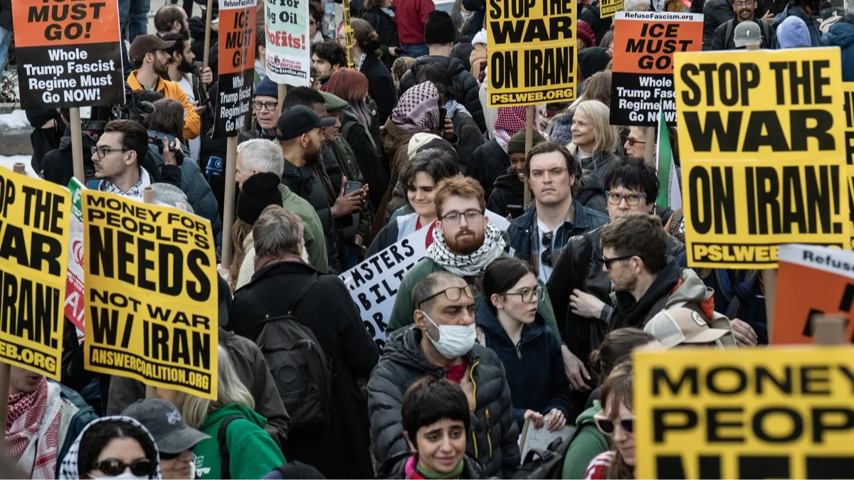 Участники акции протеста против военных ударов США по Ирану, Нью-Йорк, 28 февраля 2026 года. Фото: Derek French / EPA