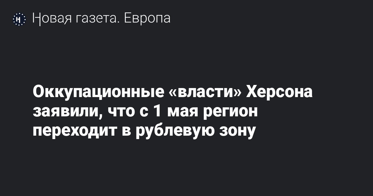 «Назначенный» на должность «заместителя председателя военно-гражданской администрации» Херсонской области Кирилл Стремоусов заявил, что с 1 мая оккупированный регион переходит в рублевую зону. Слова Стремоусова приводит российское госагентство РИА Новости.