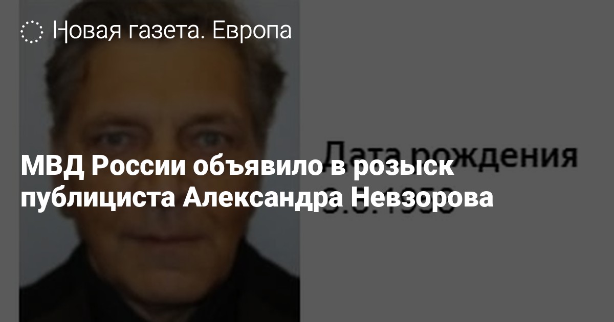 Министерство внутренних дел РФ объявило в розыск публициста Александра Невзорова «по статье УК», следует из базы данных ведомства.