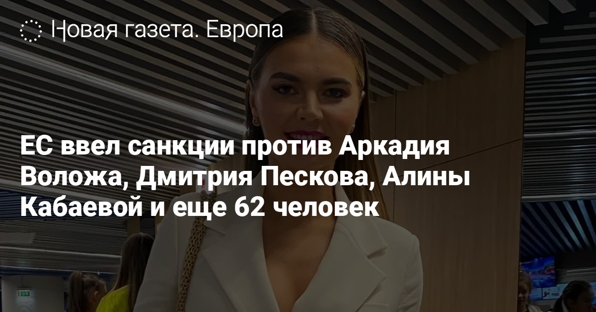ЕС ввел санкции против Аркадия Воложа, Дмитрия Пескова, Алины Кабаевой и еще 62 человек