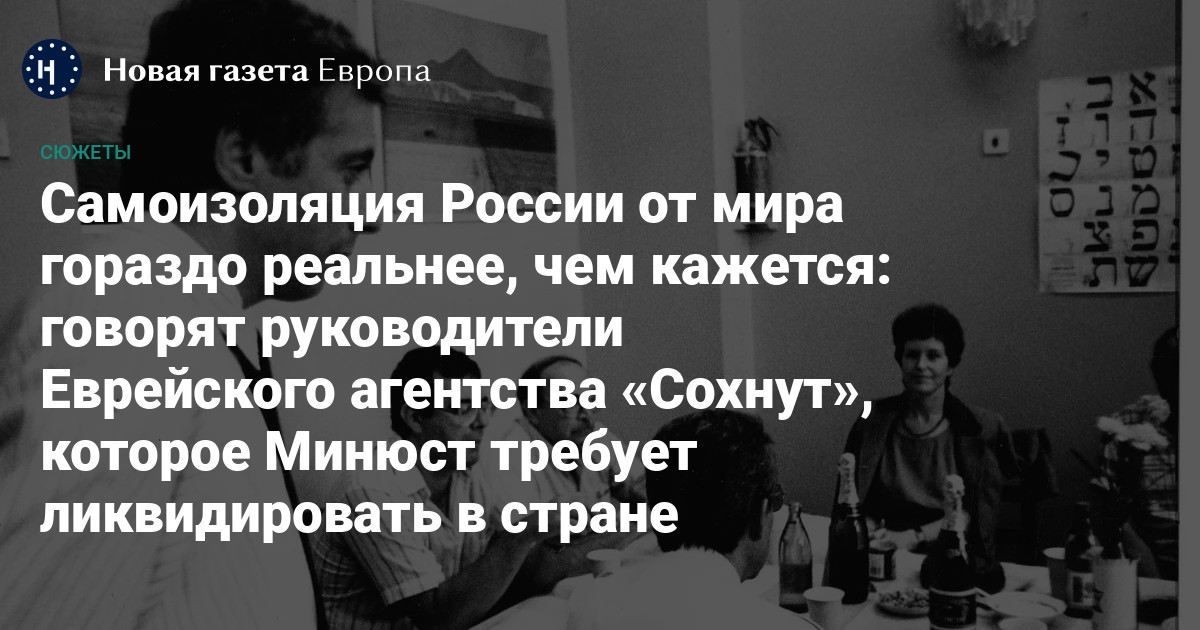 Самоизоляция России от мира гораздо реальнее, чем кажется: говорят руководители Еврейского агентства «Сохнут», которое Минюст требует ликвидировать в стране