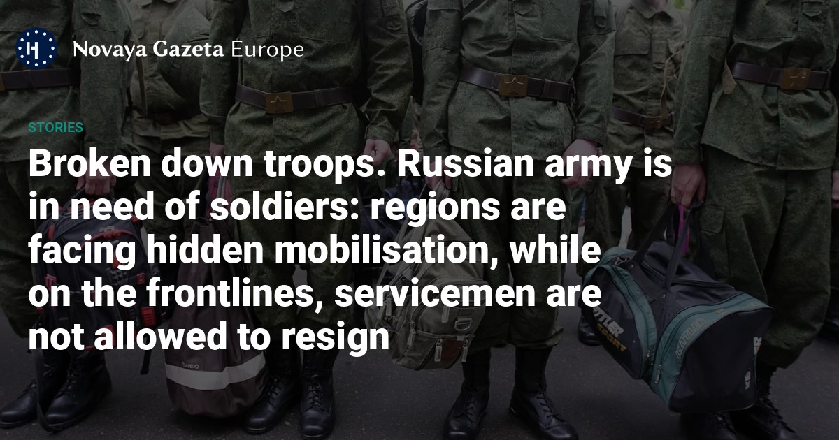 Russian servicemen fighting in Ukraine and their relatives massively complain about the soldiers not being allowed to terminate contracts: the command will not let them return home. In response to letters of resignation, the command threatens soldiers with criminal cases or being sent to pre-trial detention centres or the frontlines. Novaya Gazeta. Europe found a soldier that had managed to break the contract and return home. He told us why servicemen are massively resigning and what happens to someone who tries to stop their involvement in the war.