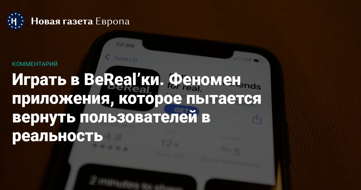 BeReal — приложение, которое в случайное время дня присылает уведомление с фразой «Пора быть настоящим» (Time to be real). Дальше у пользователя есть две минуты, чтобы сделать фотографию на фронтальную и основную камеры смартфона. Если не успеть — не получится просмотреть ленту. «Санкции» против пользователя применяются и если он попытается закрыть одну из камер.