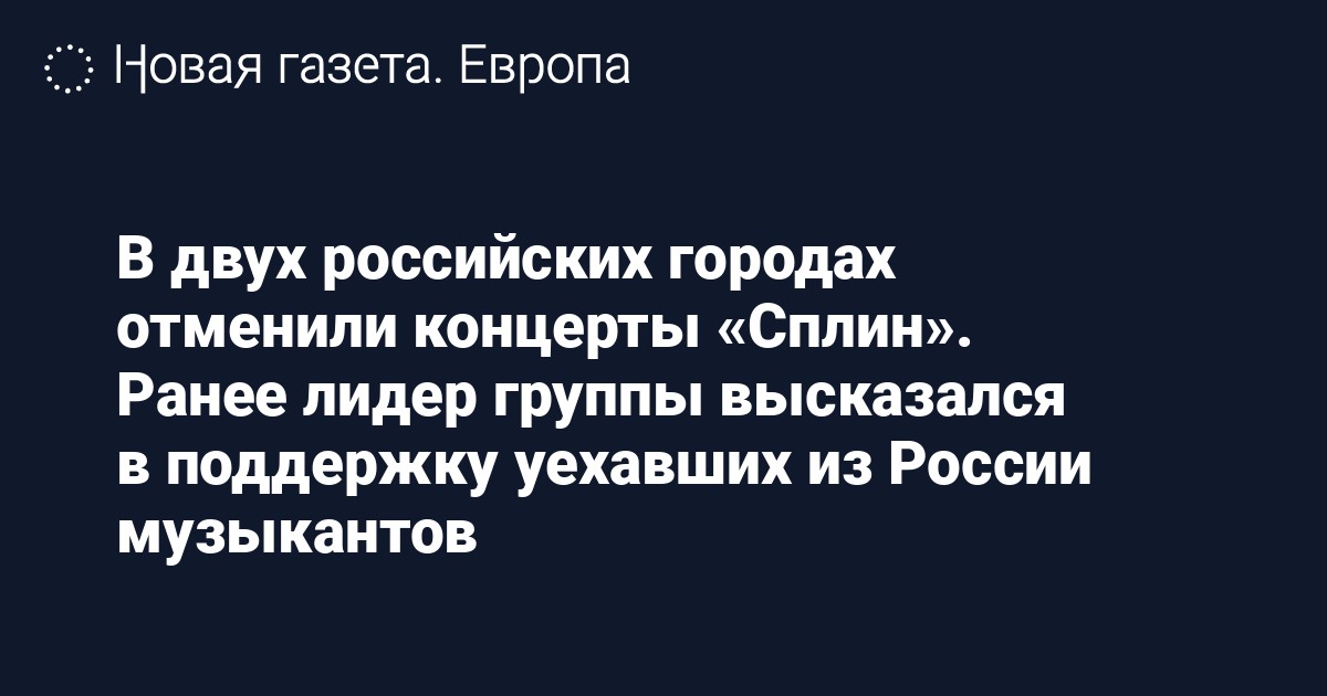 В Светлагорске выступление «Сплин» должно было пройти 11 ноября. О его отмене сообщила концертная площадка «Янтарь Холл». Причины отмены выступления в сообщении не указаны.