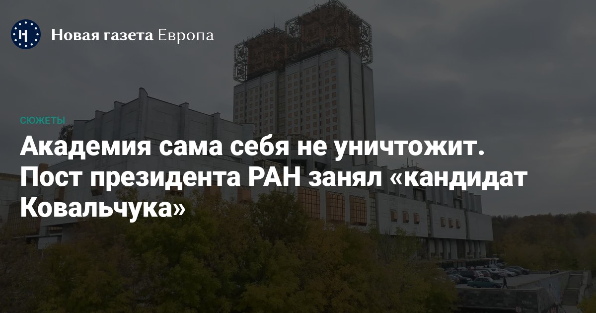 — Кремль довольно давно пытался прибрать Академию к рукам, но она сопротивлялась. Хотели посадить в кресло президента Ковальчука, давнего помощника Путина, но академики даже не согласились дать ему звание академика, а член-корреспондент не может баллотироваться в президенты. Что было делать? Найти прокси-президента, который будет проводить линию Ковальчука, — писал Десницкий.