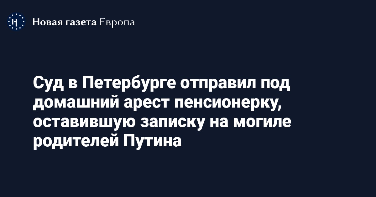 Приморский районный суд Петербурга отправил под домашний арест 60-летнею Ирину Цыбаневу по делу о записке, оставленной на могиле родителей президента РФ Владимира Путина. Об этом сообщает «Медиазона».