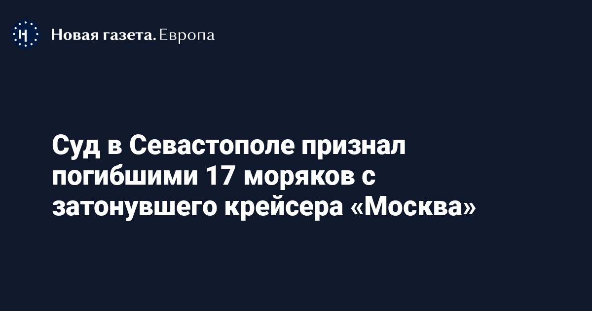 Нахимовский районный суд Севастополя признал погибшими 17 моряков с затонувшего крейсера «Москва», сообщает «Агентство» со ссылкой на суд. Информация о всех 17 делах опубликована в картотеке суда.