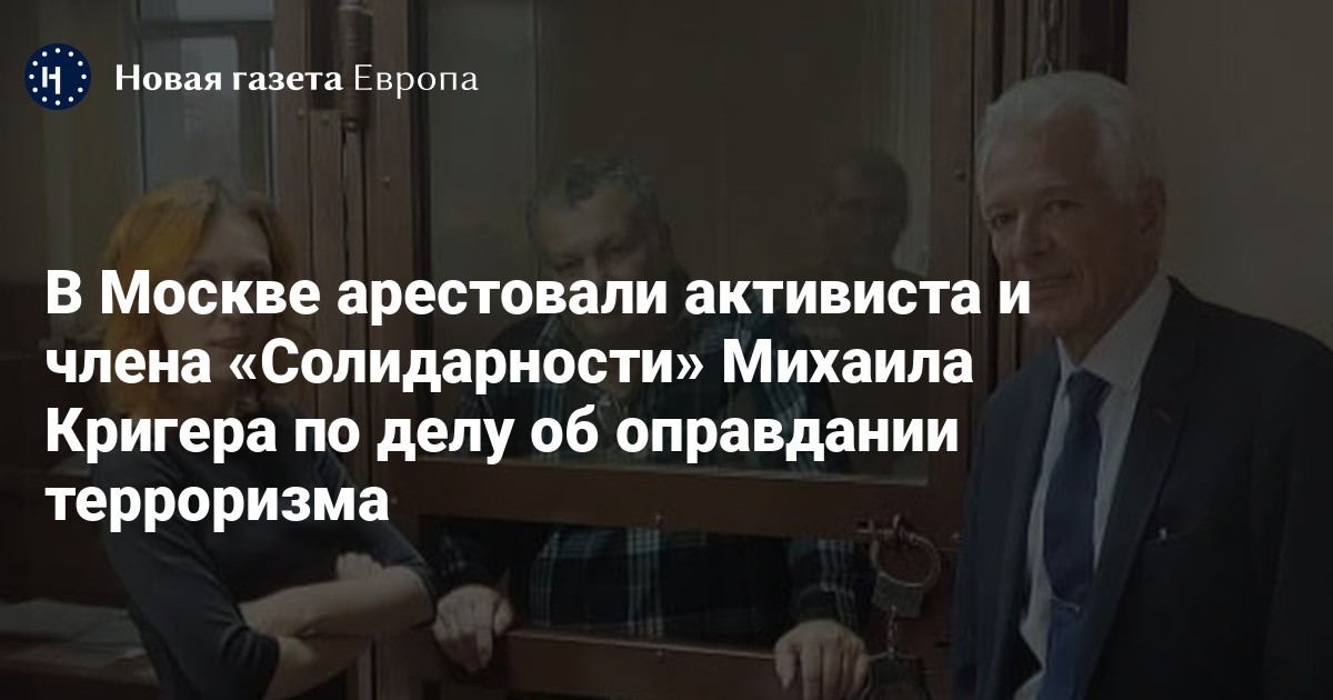 Черемушкинский суд Москвы арестовал на два месяца активиста Михаила Кригера по обвинению в оправдании терроризма (ч. 2 ст. 205.2 УК РФ). Об этом «Новой газете. Европа» сообщили в пресс-службе суда. Как минимум до 1 января активист пробудет в СИЗО.