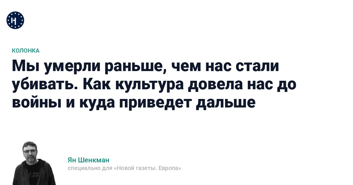 Ужас 24 февраля не только в том, что начали убивать в промышленных масштабах (хотя это, конечно, главное), но и в приговоре, который обжалованию не подлежит: всё, что было до этого, было зря. Все тридцать или сколько там лет. А для моего, например, поколения это вся жизнь. Жизнь без настоящего, жизнь, выброшенная в мусорное ведро.