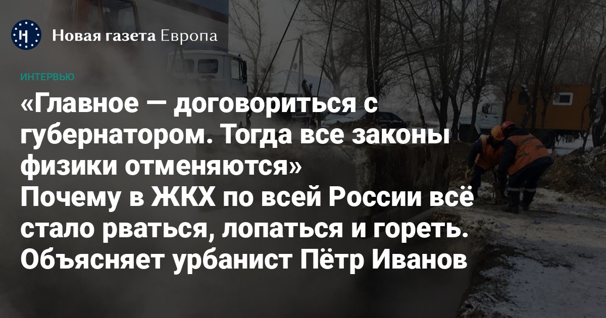 — С жилищно-коммунальным хозяйством в последнее время по всей стране что-то происходит: Волгоград залило фекалиями, в Сибири одни города сидят без света, другие — без отопления…