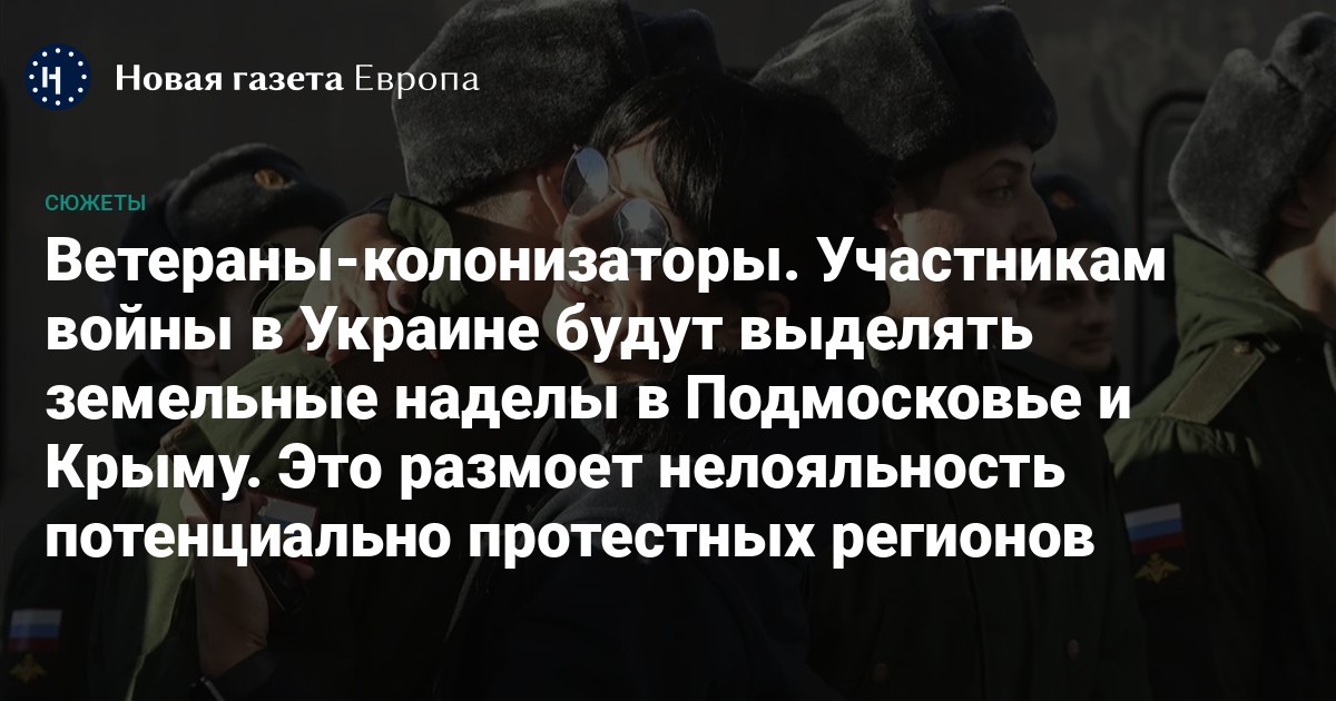 Участникам войны в Украине будут выделять земельные наделы в Подмосковье и Крыму. Это размоет нелояльность потенциально протестных регионов