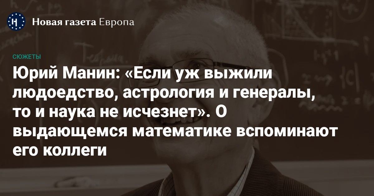 Юрий Манин: «Если уж выжили людоедство, астрология и генералы, то и наука не исчезнет»