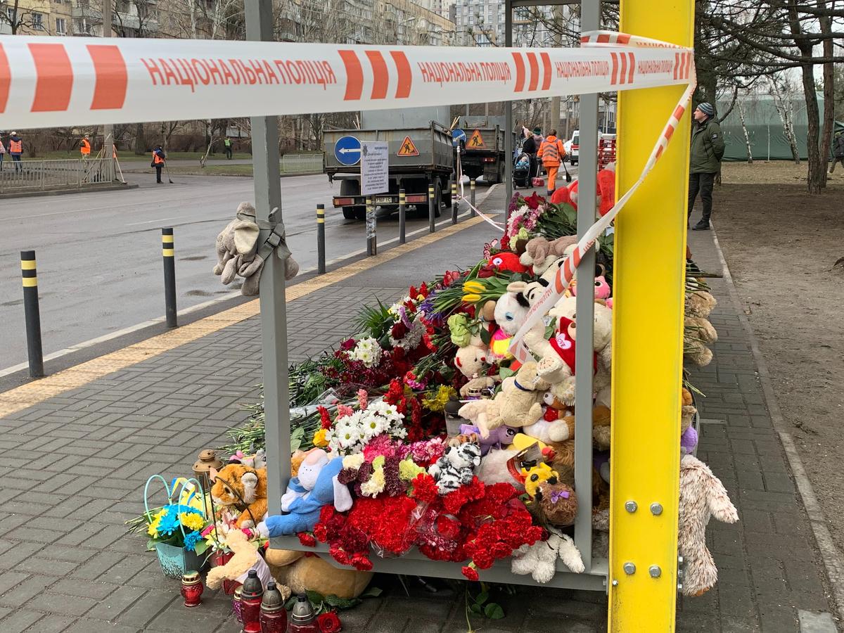 На фонарном столбе рядом со стихийным мемориалом скотчем приклеено объявление: «Психологическая поддержка 31 бригады имени генерал-майора Александра Радзиевского, горячая линия (телефон), психолог Юлия (телефон)». Бойцы Национальной гвардии, которые доставали из-под плит расплющенные человеческие останки толщиной в лист бумаги, — не железные.