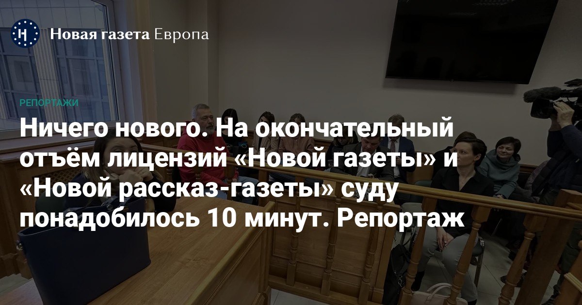 На окончательный отъём лицензий «Новой газеты» и «Новой рассказ-газеты» суду понадобилось 10 минут. Репортаж