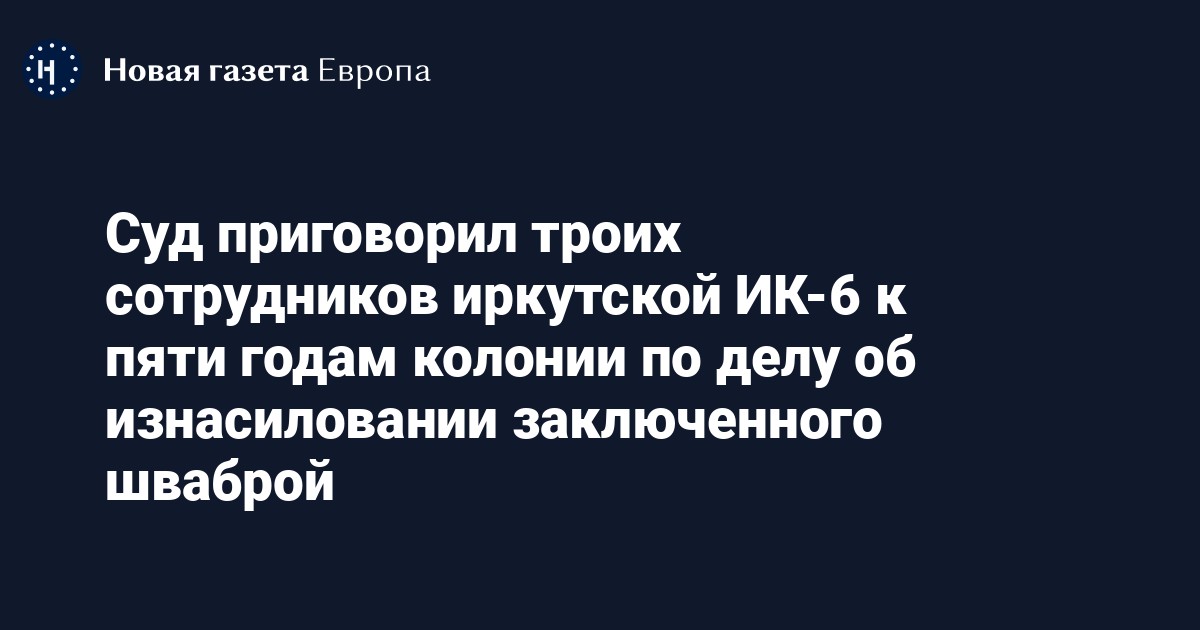 Свердловский районный суд Иркутска приговорил трех экс-сотрудников региональной исправительной колонии №6 к пяти годами лишения свободы каждого по делу о пытках заключенного. Об этом сообщает «Сибирь.Реалии» со ссылкой на адвоката Наталью Юсупову, информация также опубликована на сайте суда.