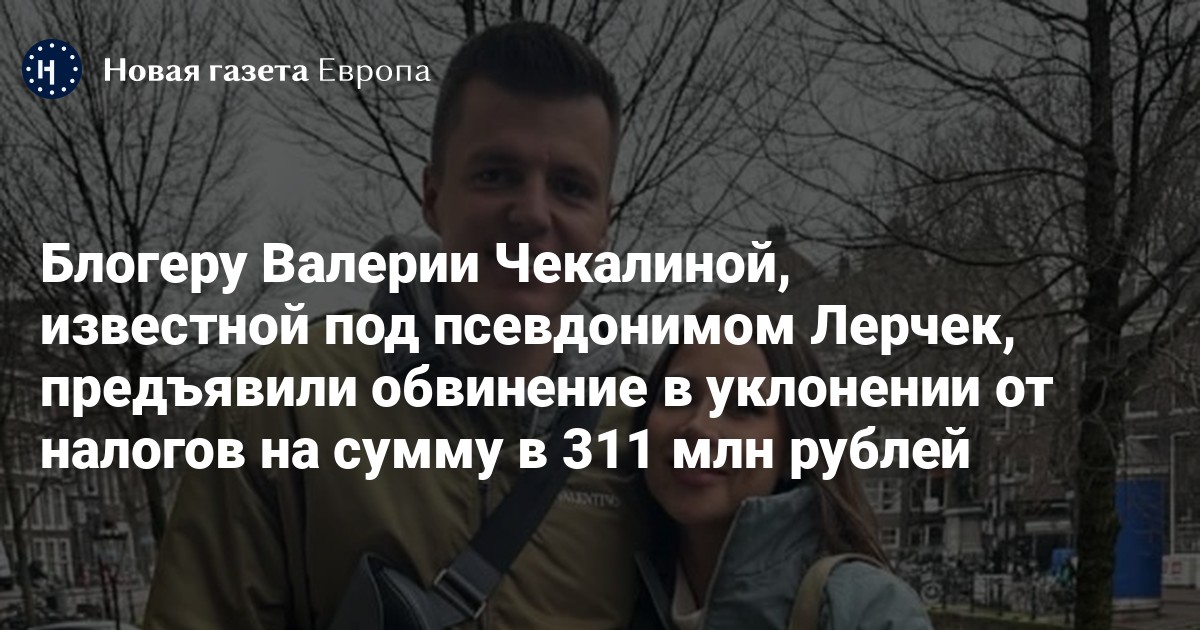 Блогеру Валерии Чекалиной, известной под псевдонимом Лерчек, предъявили обвинение в уклонении от налогов на сумму в 311 млн рублей