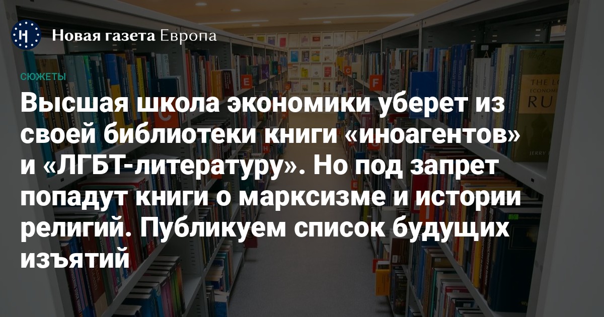 Высшая школа экономики уберет из своей библиотеки книги «иноагентов» и «ЛГБТ-литературу»