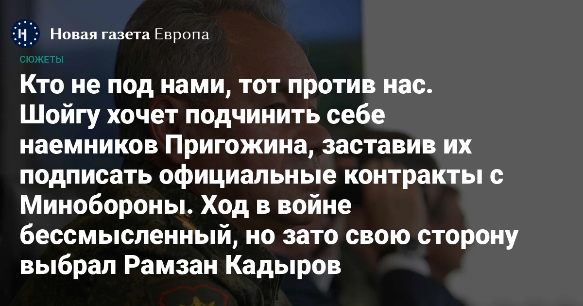 Шойгу хочет подчинить себе наемников Пригожина, заставив их подписать официальные контракты с Минобороны. Ход в войне бессмысленный, но зато свою сторону выбрал Рамзан Кадыров