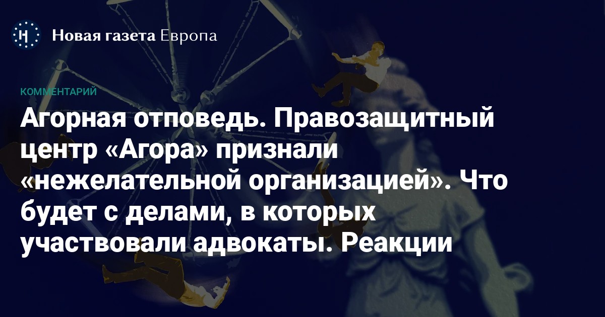 «“Агора” — одна из самых высокопрофессиональных команд правозащитников, которые мне известны. В отличие от Генеральной прокуратуры РФ, они самоотверженно и добросовестно исполняли свой долг по защите прав человека в России. Их организационная структура была выстроена почти идеально, что позволяло им всегда доводить дела своих доверителей до органов международного правосудия. Признание “Агоры” нежелательной организацией и запрет всех правозащитных организаций в России был много лет назад предсказан ее руководителем Павлом Чиковым. Так что я не думаю, что это стало для них неожиданностью.