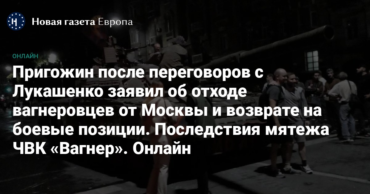 Глава ЧВК «Вагнер» Евгений Пригожин объявил о фактическом начале вооруженного столкновения с Минобороны РФ, а затем прекратил мятеж после разговора с Александром Лукашенко. «Новая газета Европа» следит за последствиями бунта частной военной компании.