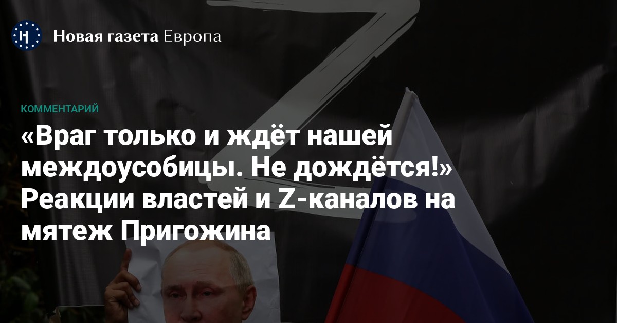«Наша страна ведет войну на выживание. За свое будущее! Мы не имеем ни малейшего права доставлять радости врагу конфликтом внутри страны. <…> Сегодня личные обиды недопустимы! И те, кто по каким-то причинам, возможно, был введен в заблуждение, должны немедленно прекратить преступления. Военная сила нам нужна на фронте! <…> Нет стороны Министерства обороны или ЧВК «Вагнер». Есть сторона врага и сторона России во главе с Президентом».