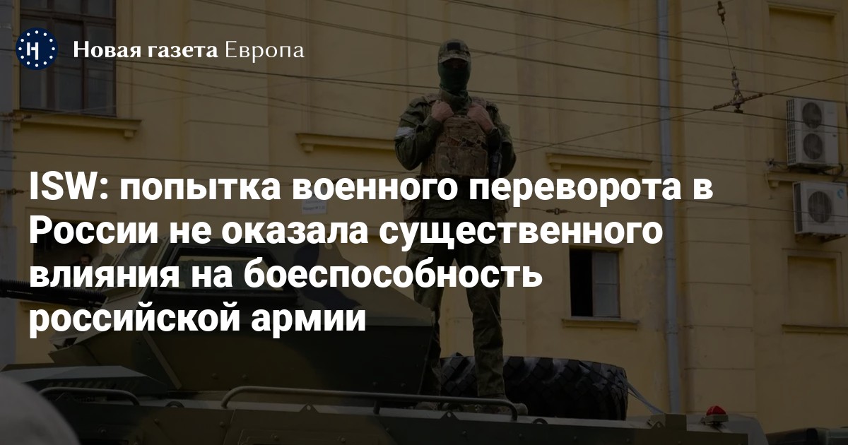 Вооруженное восстание ЧВК «Вагнер», по-видимому, не оказало существенного влияния на способность российских войск проводить наступательные и оборонительные операции в Украине, заявили в американском Институте изучения войны (ISW).