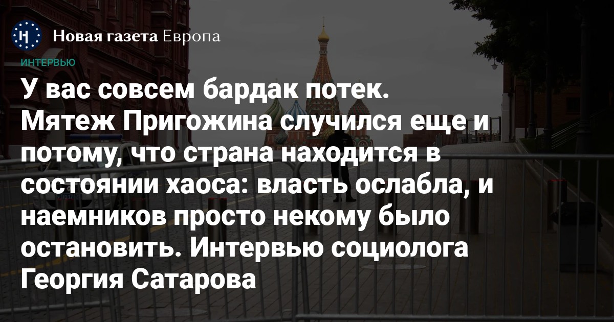 За вооруженный мятеж 23–24 июня, за гибель летчиков и самолета с вертолетами, за развороченные дороги Ростова и Липецка, за расстрелянный автомобиль с мирными гражданами не ответит никто — уголовное дело прекращено. Тяжелое вооружение «Вагнера» переходит к Росгвардии, теперь она будет играть роль параллельной армии, а Виктор Золотов, надо понимать, заменит Пригожина, исчезнувшего с радаров предположительно в Беларуси. Какие выводы можно сделать из произошедшего, а главное, кто будет делать эти выводы, рассказывает президент Фонда прикладных политических исследований ИНДЕМ («Информатика для демократии») Георгий Сатаров.