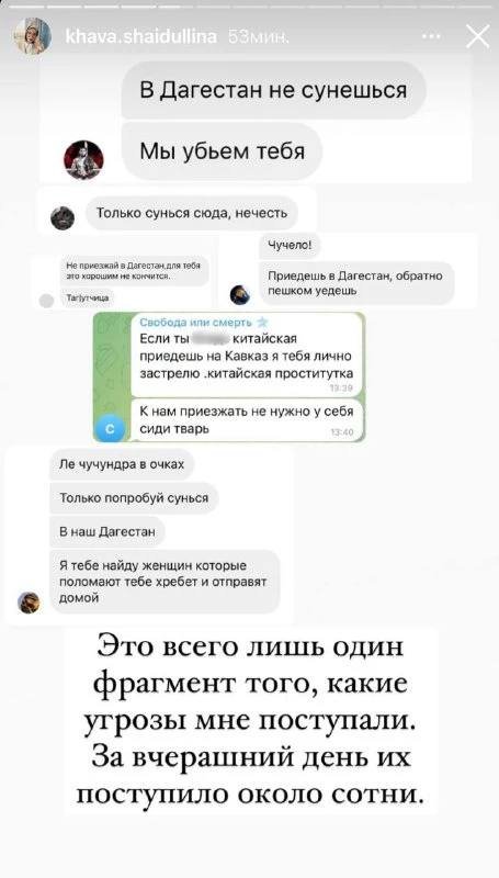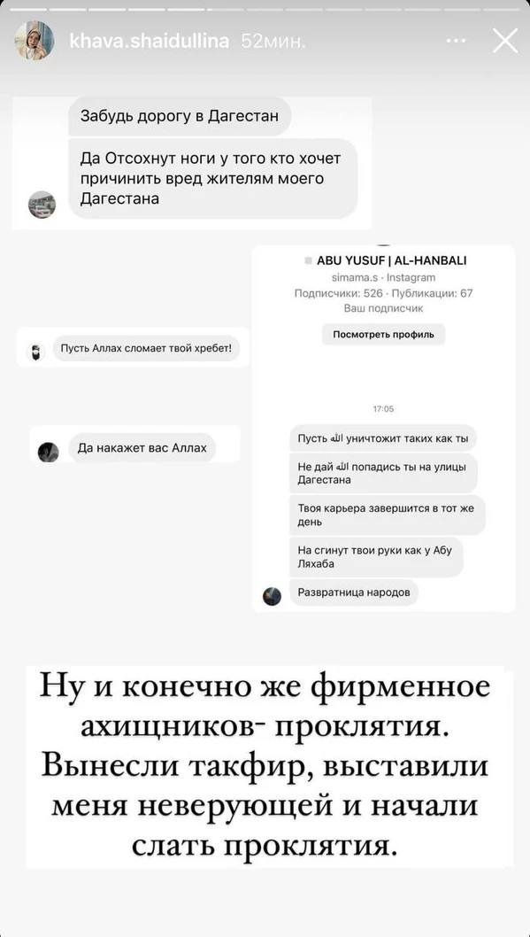 Угрозы, которые поступают в адрес Хавы Шайдуллиной. Источник: Instagram