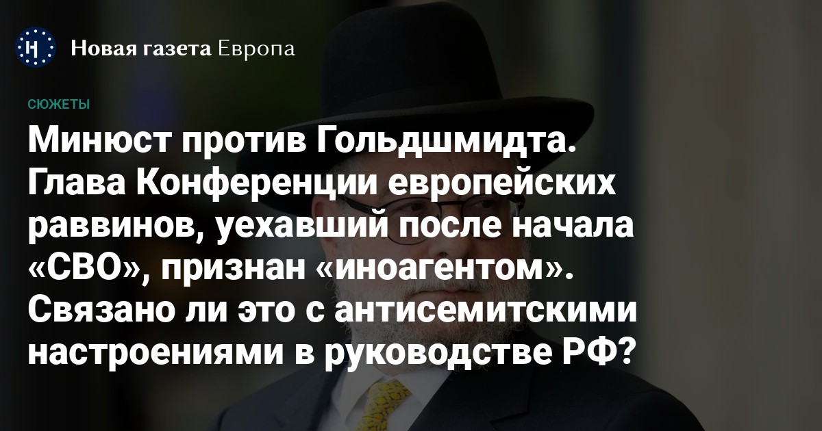 Внесение в список «иноагентов» еврейского религиозного деятеля такого уровня заставляет вспомнить о репрессивных практиках сталинских времен. Вечером в пятницу, 30 июня, когда верующие иудаисты уже начинали отмечать шаббат и отключались от информационных каналов, Минюст РФ поставил клеймо на главе Конференции европейских раввинов, бывшем главном раввине Москвы Пинхасе Гольдшмидте. Согласно паспорту, «в миру» раввина зовут Филипп — именно это имя указало министерство. По его утверждению, почтенный ребе с 30-летним стажем служения «распространял ложную информацию о решениях и политике российских государственных органов и выступал против специальной военной операции».