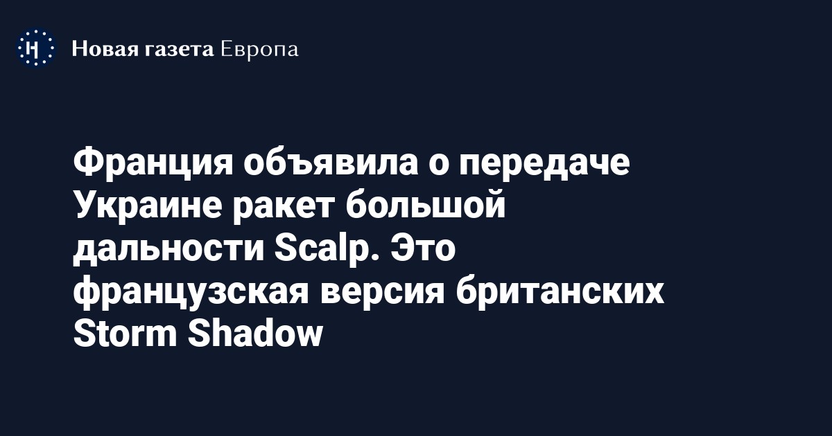 Scalp — французская версия британских ракет Storm Shadow, которые Украина получает от Великобритании с мая 2023 года. Дальность стрельбы Storm Shadow — 250 километров.