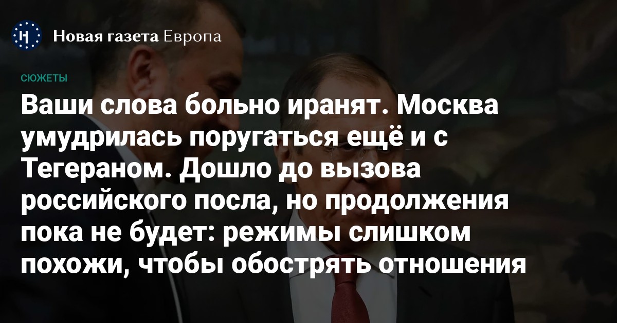 «Такая болезненная реакция Тегерана — лишнее напоминание Москве о том, что сейчас она находится в значительной зависимости от Ирана, в том числе в вопросе вооружений, — объясняет иранист, автор телеграм-канала «Дежурный по Ирану» Никита Смагин. — Россия, которая на протяжении многих лет пыталась играть роль универсального медиатора на Ближнем Востоке, а также выстраивать равноудаленные отношения со всеми странами региона, сегодня всё меньше может это делать».