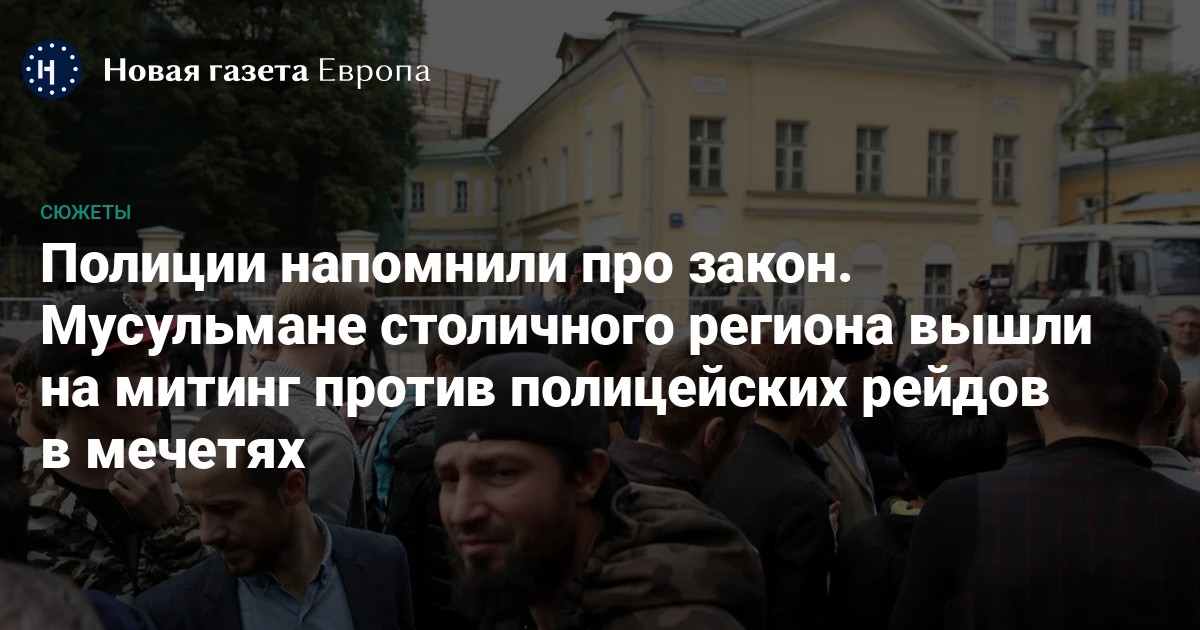 Мусульмане вышли на митинг у исторической мечети в центре Москвы. За последний месяц сотрудники правоохранительных органов устроили несколько облав в подмосковных мечетях, где они якобы искали «нелегальных» мигрантов. Духовное управление мусульман России потребовало проверить действия силовиков по статье об оскорблении чувств верующих, а оппозиционный телеграм-канал «Утро Дагестана» призвал мусульман выйти на митинг в центре Москвы.