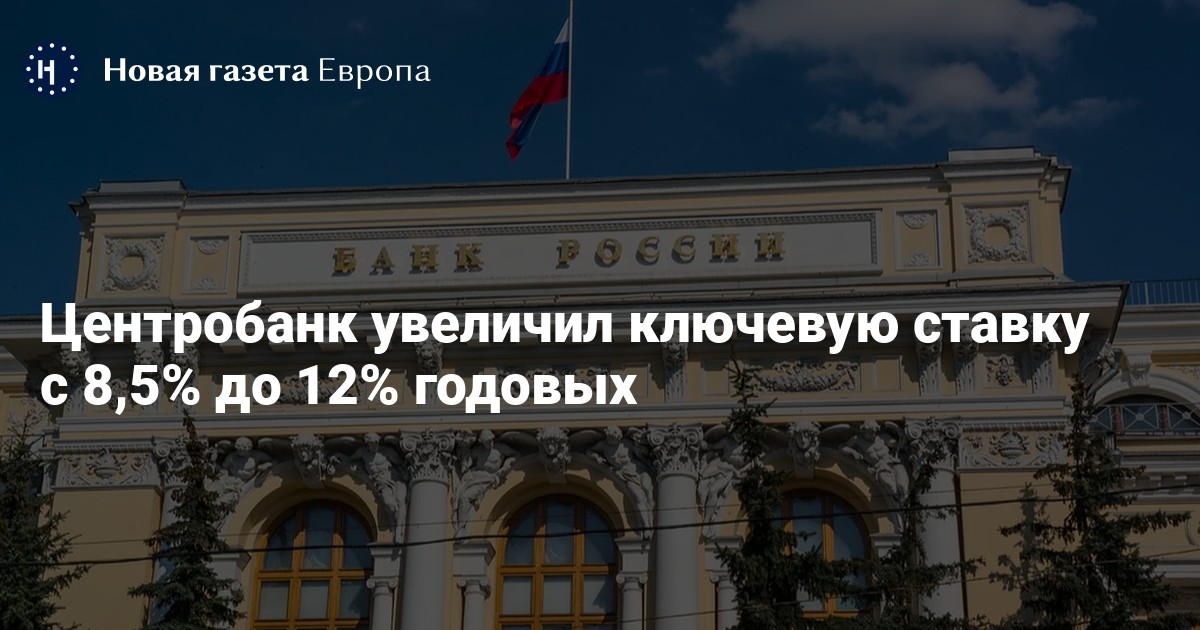 Центробанк увеличил ключевую ставку с 8,5% до 12% годовых