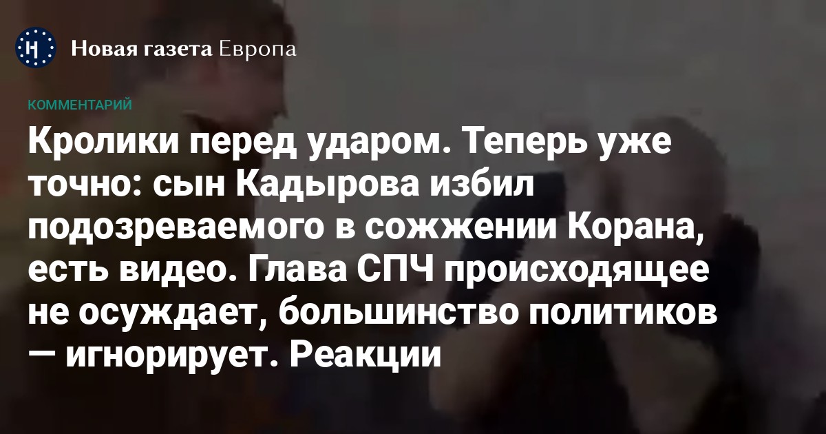 Глава Чечни Рамзан Кадыров опубликовал в своем телеграм-канале видеозапись, на которой его 15-летний сын Адам избивает в СИЗО 19-летнего фигуранта дела о сожжении Корана Никиту Журавеля. На ролике молодой человек в одежде цвета хаки бьет арестованного ногами и руками, валит его на пол. Обвиняемый пытается защищаться руками.