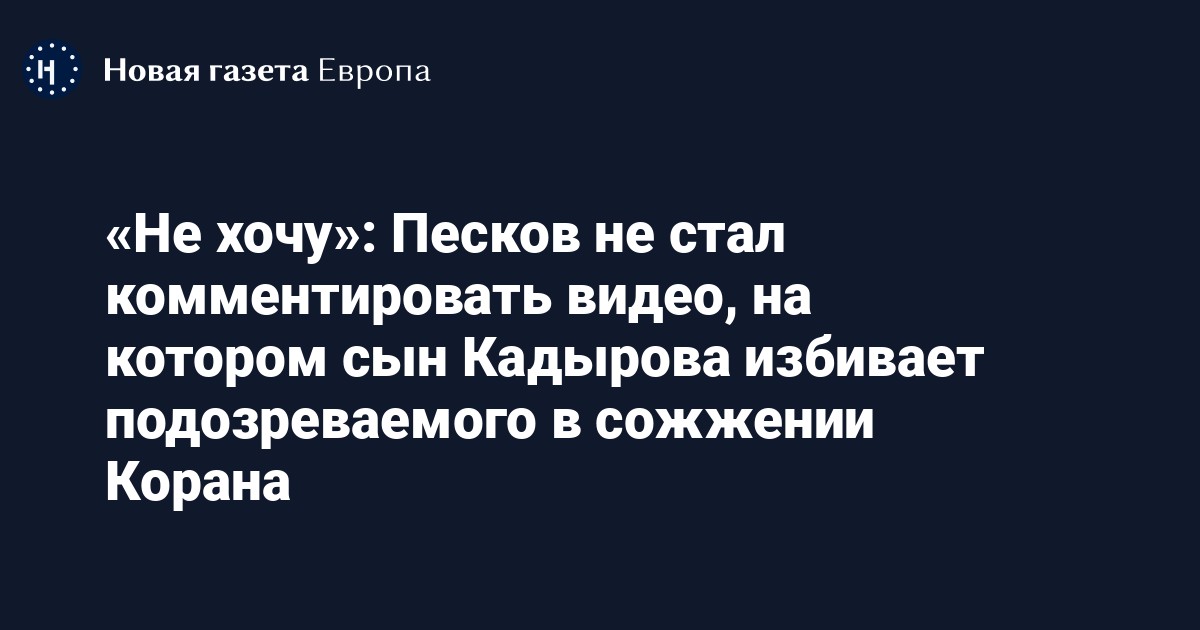 Пресс-секретарь президента РФ Дмитрий Песков на брифинге сказал журналистам, что не хочет комментировать видео, на котором несовершеннолетний сын главы Чечни Рамзана Кадырова избивает задержанного. Об этом сообщает «Интерфакс».