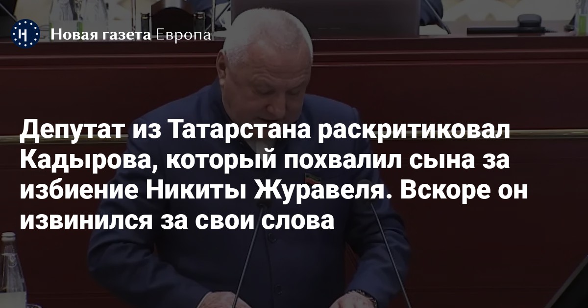 Депутат Госсовета Татарстана из фракции «Единой России» Азат Хамаев раскритиковал главу Чечни Рамзана Кадырова за то, что его 15-летний сын Адам избил арестованного и получил звание героя. А затем извинился перед коллегами, передает государственное агентство «Татар-Информ».