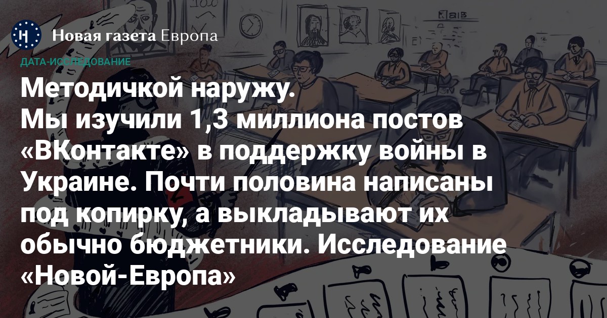 В России продолжает процветать индустрия провластных «троллей» и «копипастеров» в соцсетях — причем часто это не боты, а реальные люди. «Новая газета Европа» с помощью анализа данных нашла более 600 тысяч провоенных постов «ВКонтакте», написанных по методичкам сверху. Группы идентичных постов почти всегда публикуются людьми из одного и того же региона — как правило, бюджетниками. Рассказываем, чем провластные комментаторы наполняют соцсети, кто координирует эту работу и зачем все это нужно Кремлю.